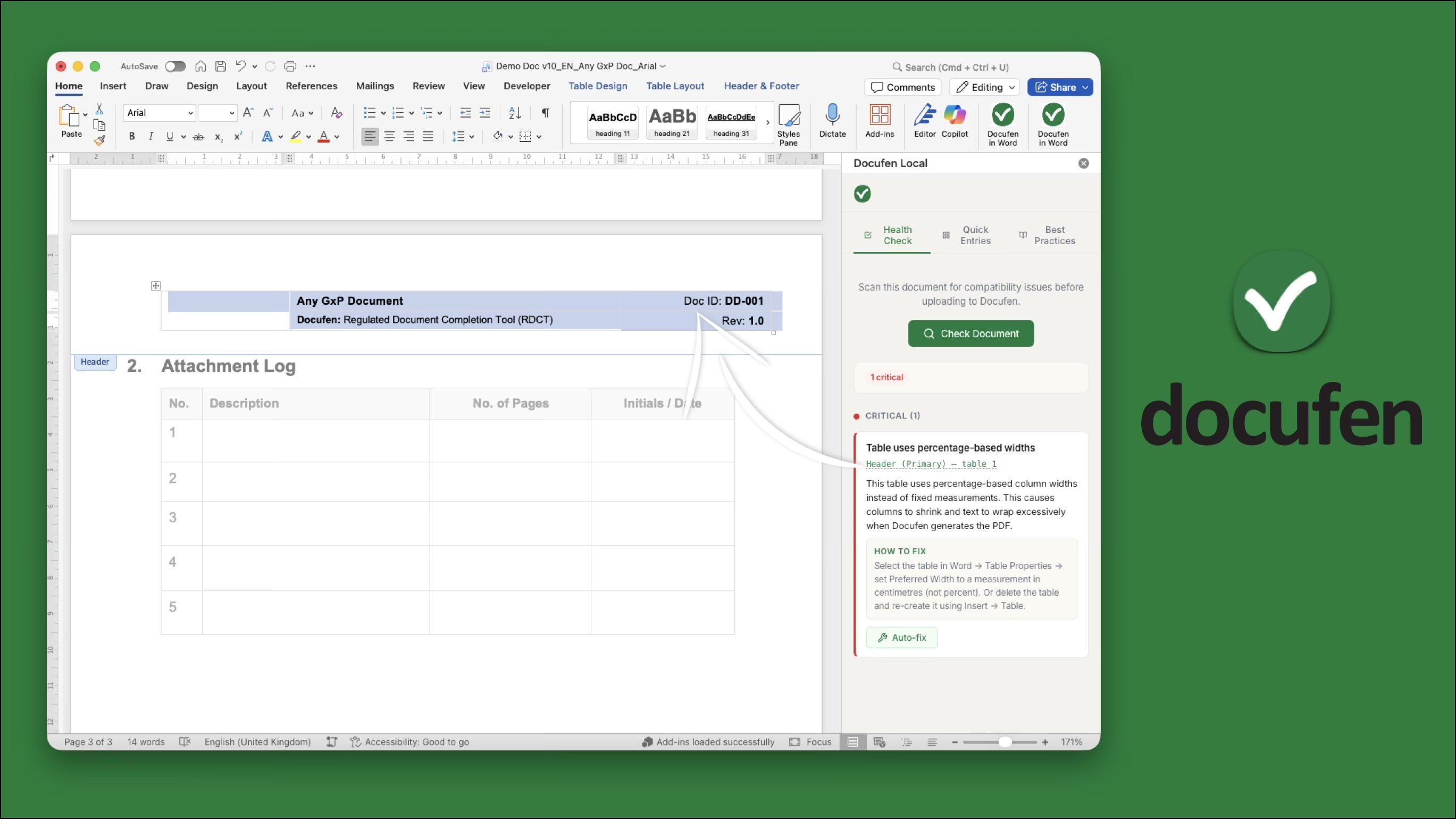 Designed for quality assurance teams, document controllers, and validation engineers working under GxP, 21 CFR Part 11, EU Annex 11, and TGA regulatory frameworks. It fits naturally into your document authoring workflow without requiring any change to your existing SOPs or document templates.